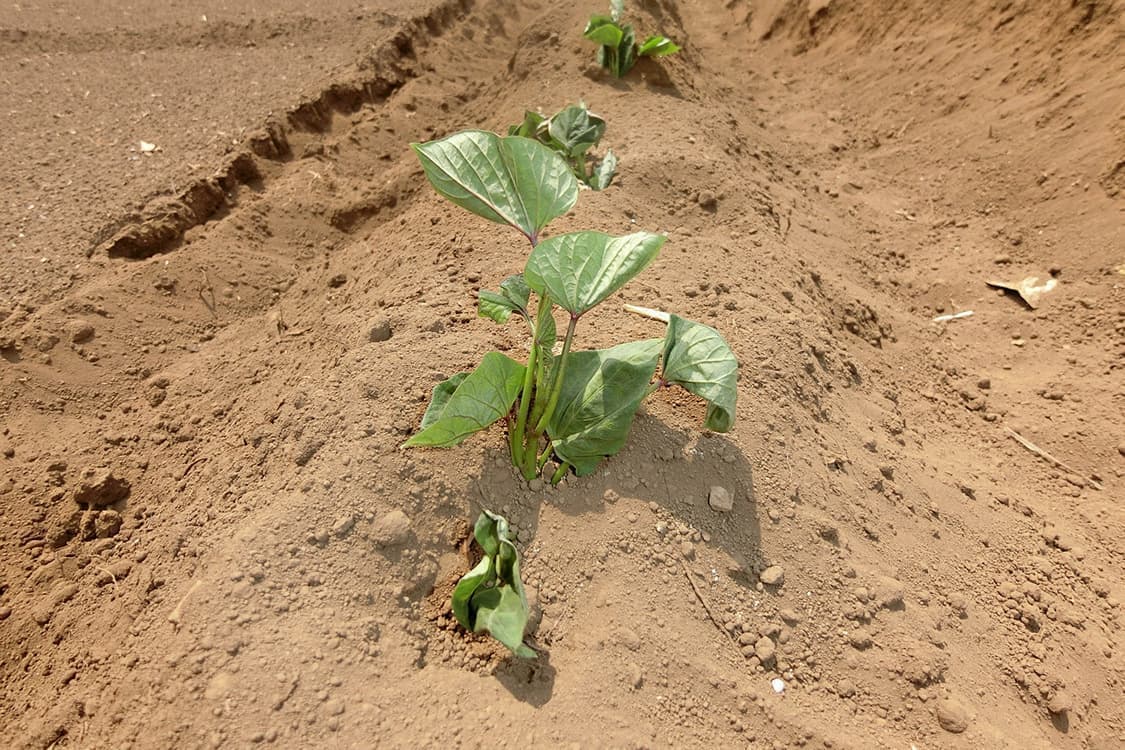 弦を引き片付けてから、ようやく芋を掘ることになります。裸足になり素手で行い、土の感触などを感じながら芋の収穫を行います。