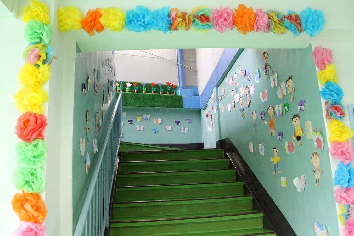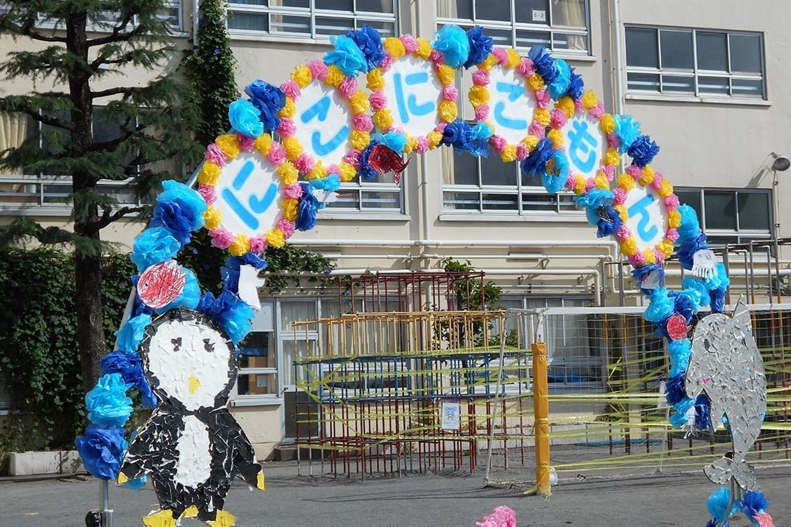 特に年長組の障害物競走に関しては、年長児の意見を聴き、話し合いにより決めて実現できるように手助けしていきます。にこにこもんは大切な年長児の力作です。