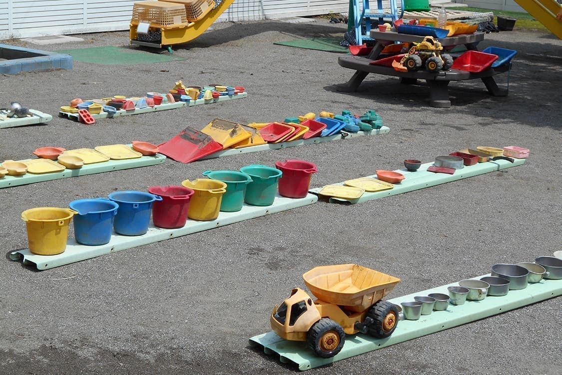 夏には日よけを出し、暑いながらも日陰を見つけて短時間でもおもいっきり遊べる環境作りをしています。