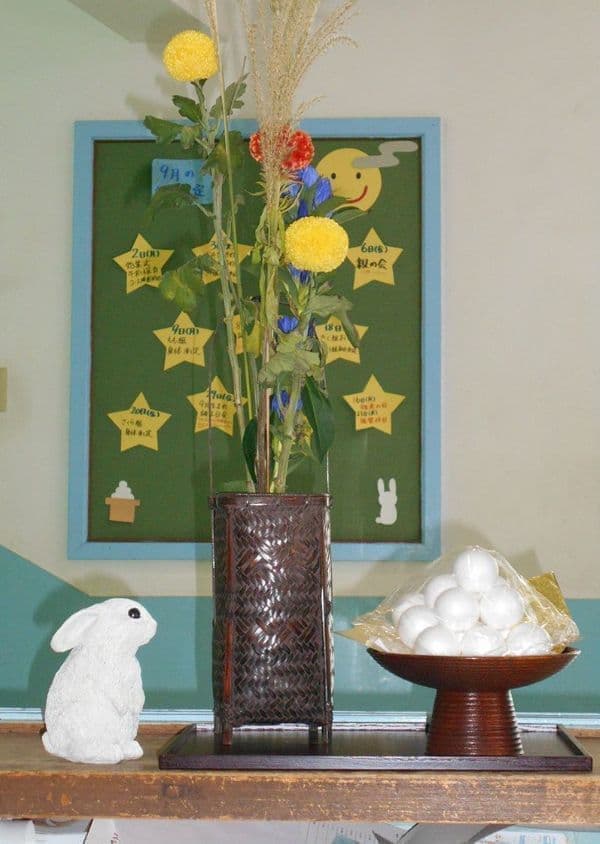 園内で育った笹を切り短冊や飾りを付けてホールで七夕まつりを行います。